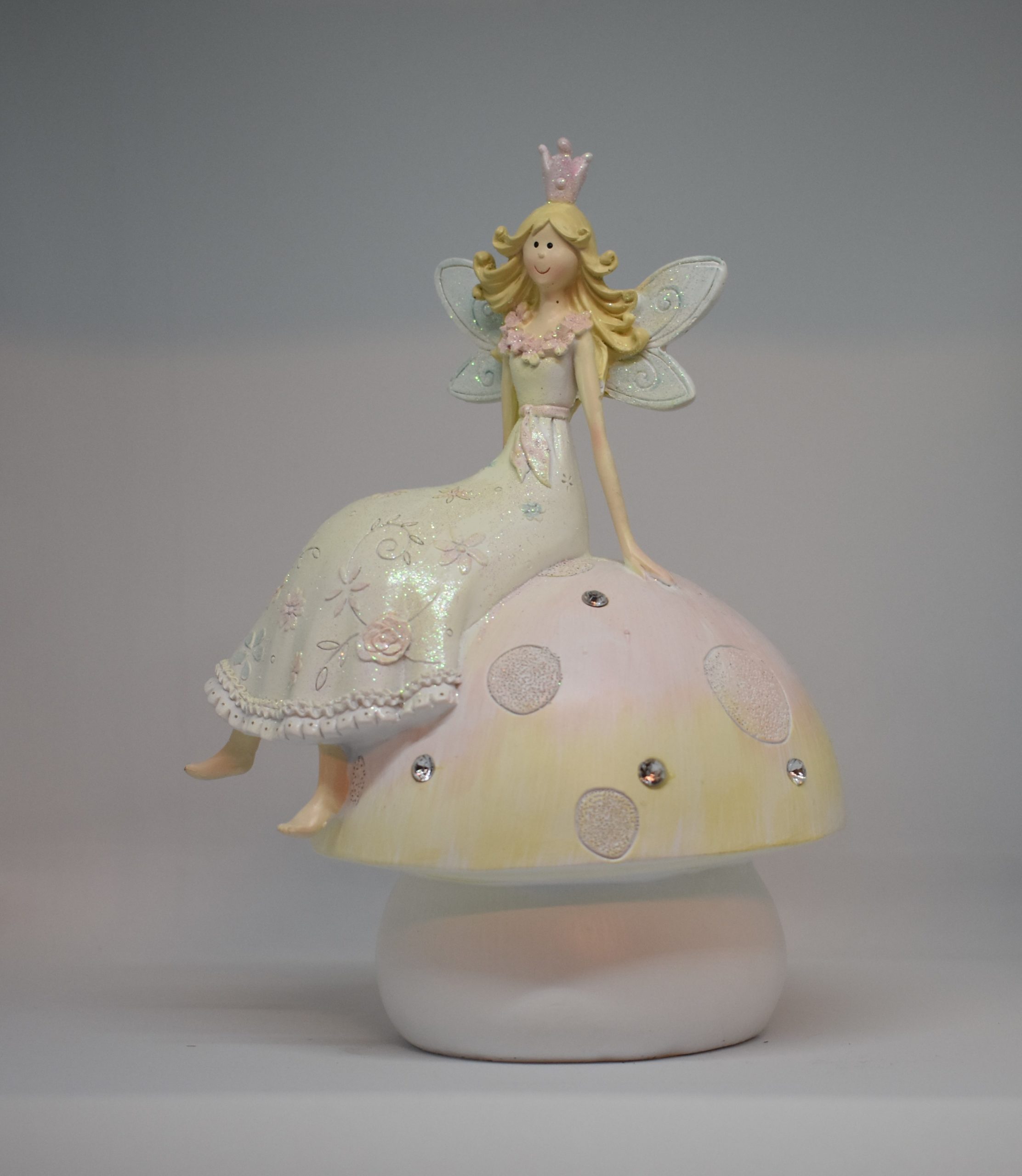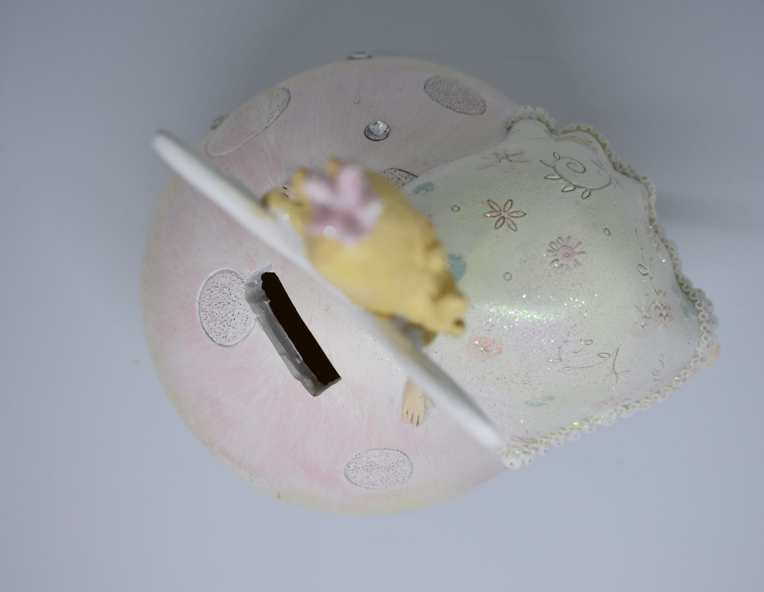 Yndig fe på en svampe sparrebøsse i skønne pastel farver og lidt glimmer, passer perfekt til både den lille og stores værelse.